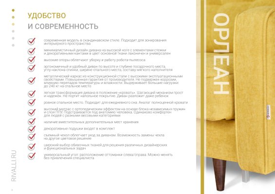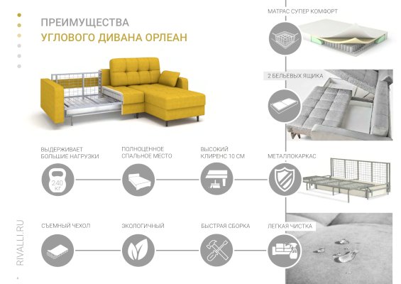 Угловой диван-кровать Орлеан (Rivalli) - за 99 723 руб. в Владимире. Купите на сайте vladimir.onlinemarketmebeli.ru или по телефону 8(800)505-30-63 уже сегодня! Уточнить наличие, комплектацию, актуальную цену можно бесплатно у менеджера ежедневно. Закажите Угловой диван-кровать Орлеан (Rivalli) до конца акции! Доступна покупка в кредит, рассрочку. Доставим со склада или на заказ.