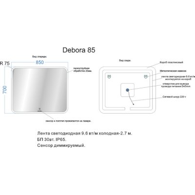 Светодиодное зеркало Debora (Veneciana) - за 17 664 руб. в Владимире. Купите на сайте vladimir.onlinemarketmebeli.ru или по телефону 8(800)505-30-63 уже сегодня! Уточнить наличие, комплектацию, актуальную цену можно бесплатно у менеджера ежедневно. Закажите Светодиодное зеркало Debora (Veneciana) до конца акции! Доступна покупка в кредит, рассрочку. Доставим со склада или на заказ.
