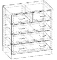 • Корпус, полки и фасады изготовлены из ЛДСП 16 мм с кромкой ПВХ 0,4 мм.