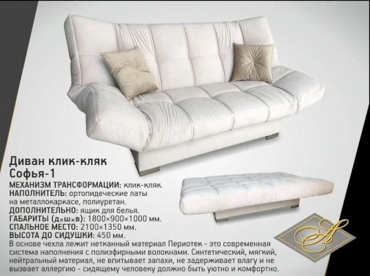 Клик Кляк Софья-1 (Асмана) - за 51 682 руб. в Владимире. Купите на сайте vladimir.onlinemarketmebeli.ru или по телефону 8(800)505-30-63 уже сегодня! Уточнить наличие, комплектацию, актуальную цену можно бесплатно у менеджера ежедневно. Закажите Клик Кляк Софья-1 (Асмана) до конца акции! Доступна покупка в кредит, рассрочку. Доставим со склада или на заказ.