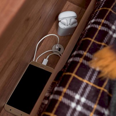Ещё одно из преимуществ этой кровати - встроенное зарядное устройство CHARGE-S USB. Используется для зарядки мобильных телефонов, планшетов. Устройство имеет компактные размеры, что позволяет разместить его прямо в нише кровати. Такая функциональная кровать не оставит равнодушными ни родителей, ни детей.