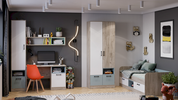 Цвет: Дуб Крафт серый/ Белый /Серо-голубой
