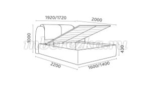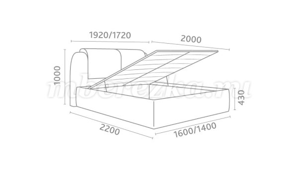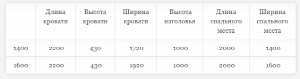 Кровать доступна в двух размерах:  1400 и 1600 мм.