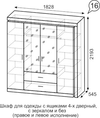 Шкаф для одежды с ящиками 4-х дверный без зеркал №16