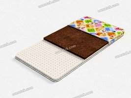 Детский матрас из натуральных материалов со сторонами разной жесткости. Способствует формированию правильной осанки. Более жесткая сторона на основе плиты из кокосовой койры предназначена новорожденным, более мягкая, с натуральным латексом, обеспечит комфортный и здоровый сон малышам постарше. Примечание: матрас средней жесткости для детей до 3 лет.