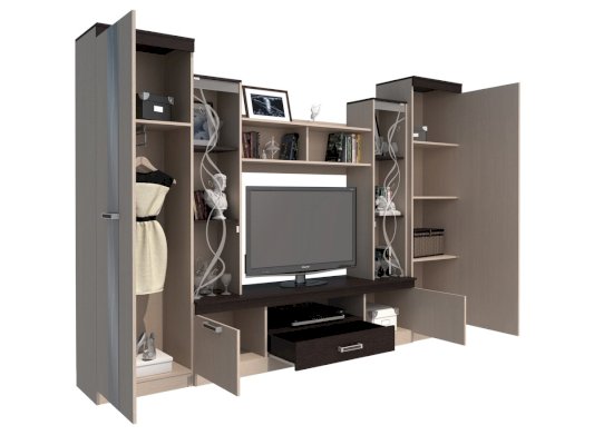 Функционал | хранение посуды / хранение одежды / зона для ТВ |