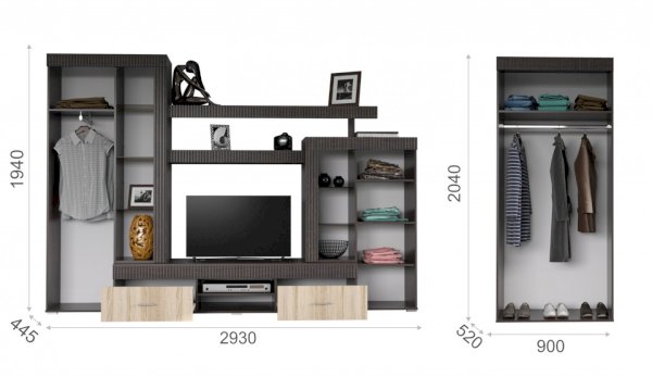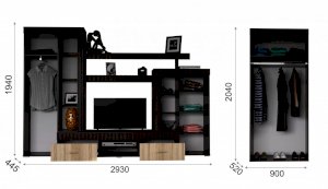 • Размер:ШхГхВ 2930х448х1939 мм