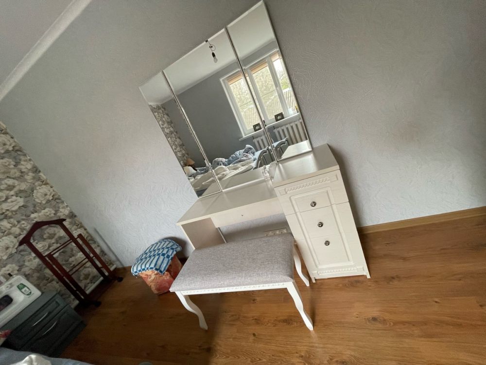 Самое первое - несоответствие цвета. В карточке товара и на фото указан белый, по факту это не так. Стол заказывался под остальную белую мебель, теперь придется искать решение. Второе - неотработанный край лдсп на центральном зеркале. Это некрасиво и бросается в глаза.