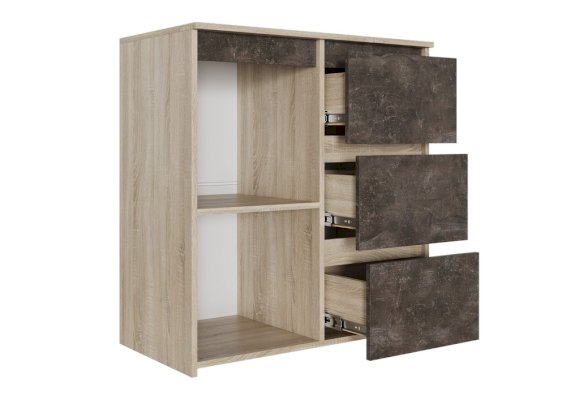 • Комод не имеет ручек, открывание происходит за фасад