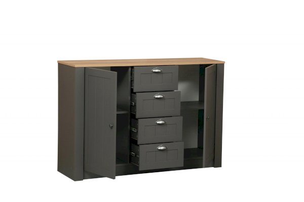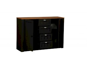 Эта модель – выбор тех, кто хочет в одном пространстве уместить многое. Четыре выдвижных ящика по центру, два вместительных отсека по бокам – все располагает к решению данной задачи. В каждом отсеке – по две полки из ЛДСП, каждая из которых выдерживает вес до 5 кг.