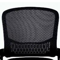 Спинка кресла выполнена из прочного сетчатого акрила с оригинальным "узором". Материал обладает высокой воздухопроницаемостью, легко чистится, способен подстраиваться под физиологические изгибы спины, при этом сохраняет форму и не растягивается. Залогом комфортного использования кресла также является эргономичная форма надёжного пластикового каркаса.