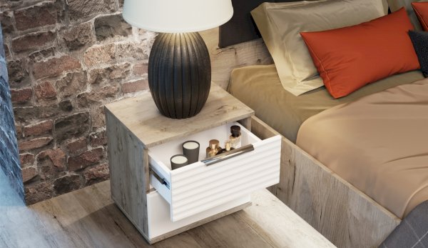 Прикроватная тумба Джулия - представитель европейского стиля минимализм. Декором белым глянцевым фасадам High Gloss служит фрезерованный рисунок «Волна» - подчеркивает зеркальный блеск, делает интерьер спальни особенным и неповторимым. Торцевые ручки из хромированного металла - яркий акцент фасадов. Тумба с ящиками на телескопических направляющих - поместит в себя все вещи, которые важно иметь под рукой - телефон, светильник или любимая книга. Идеально компонуются со всеми модулями системы Джулия.