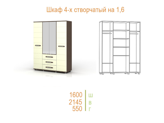 Шкаф 4-х створчатый 1600 Инфинити (SM Мебель)