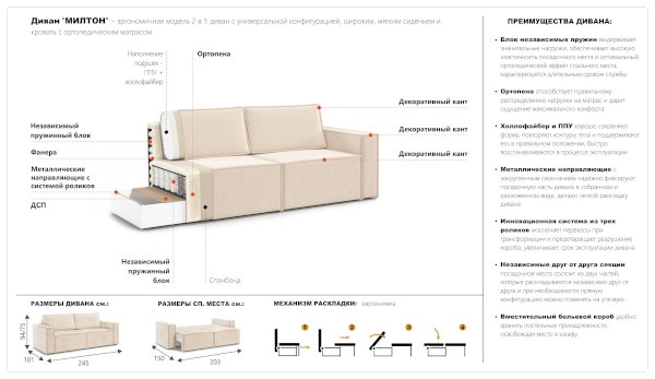 Диван Милтон (Империал) - за 60 776 руб. в Владимире. Купите на сайте vladimir.onlinemarketmebeli.ru или по телефону 8(800)505-30-63 уже сегодня! Уточнить наличие, комплектацию, актуальную цену можно бесплатно у менеджера ежедневно. Закажите Диван Милтон (Империал) до конца акции! Доступна покупка в кредит, рассрочку. Доставим со склада или на заказ.