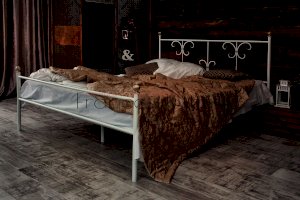 Кованая кровать Симона - это невероятное сочетание эффектного внешнего вида, потрясающих воображение результатов ручной ковки, стильного оформления в темных и светлых цветах и качественных, долговечных материалов исполнения.