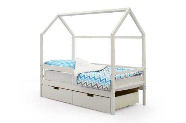 Кровать-домик легко превращается в целый замок для игр с помощью разноцветных тематических игровых накидок. Текстильная крыша на домике создаст ребенку уют и защищенное пространство.