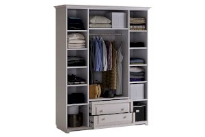 Нет ничего лучше, чем сочетание красоты и практичности. 4-створчатый шкаф «Белла» тому доказательство. Фасады шкафа выполнены в нежном оттенке джелато, дверцы украшены фрезеровкой, а ручки – декоративными кистями. Центральный отсек шкафа оснащен круглой штангой для одежды, а боковые – полками. Выдвижные ящики прекрасно подойдут для хранения вещей.