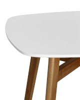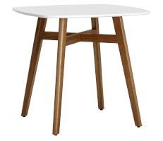 Оригинальный стол в современном стиле станет прекрасным дополнением кухни или обеденной зоны. Квадратная столешница выполнена из МДФ, окрашенного в белый цвет. Ножки стола изготовлены из массива бука.