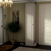 Прихожая выполнена в классическом стиле с декоративными элементами. Фасады и декоративные элементы патинированы, патина наносится вручную, по классической итальянской технологии и защищена матовым лаком.