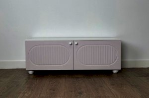 Тумба оснащена двумя распашными дверцами, за которыми располагается вместительное внутреннее пространство для хранения книг, игрушек, текстиля и других необходимых вещей. Такое решение позволяет скрыть содержимое и сохранить аккуратный внешний вид комнаты.
